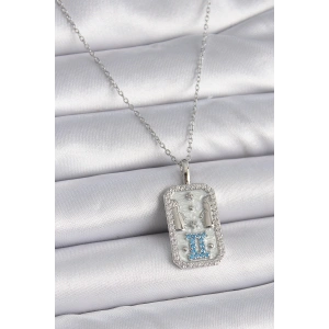 316L Çelik Gümüş Renk Zincir İkizler Burcu Zirkon Taşlı Kadın Kolye