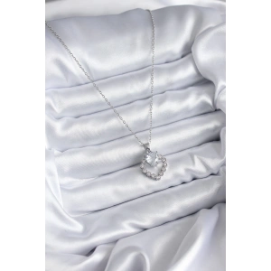 316L Çelik Zincir Gümüş Renk Zirkon Taşlı Kalp Model Kadın Kolye