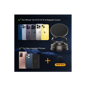Metalik Magsafe Telefon Tutucu Tüm Yüzeylerle Uyumlu Vakumlu 360 Dönen Oynar Başlık