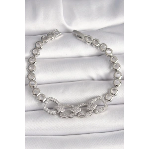 Pirinç Gümüş Renk Zirkon Taşlı Daire Zincir Model Kadın Bileklik