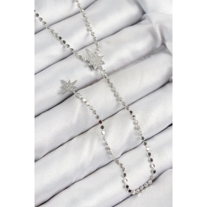 Pirinç Zirkon Taşlı Ezme Zincirli Kutup Yıldızı Model Gümüş Renk Y Kolye