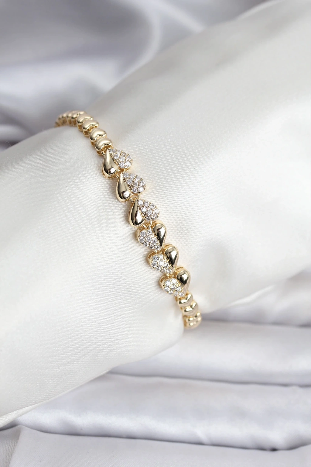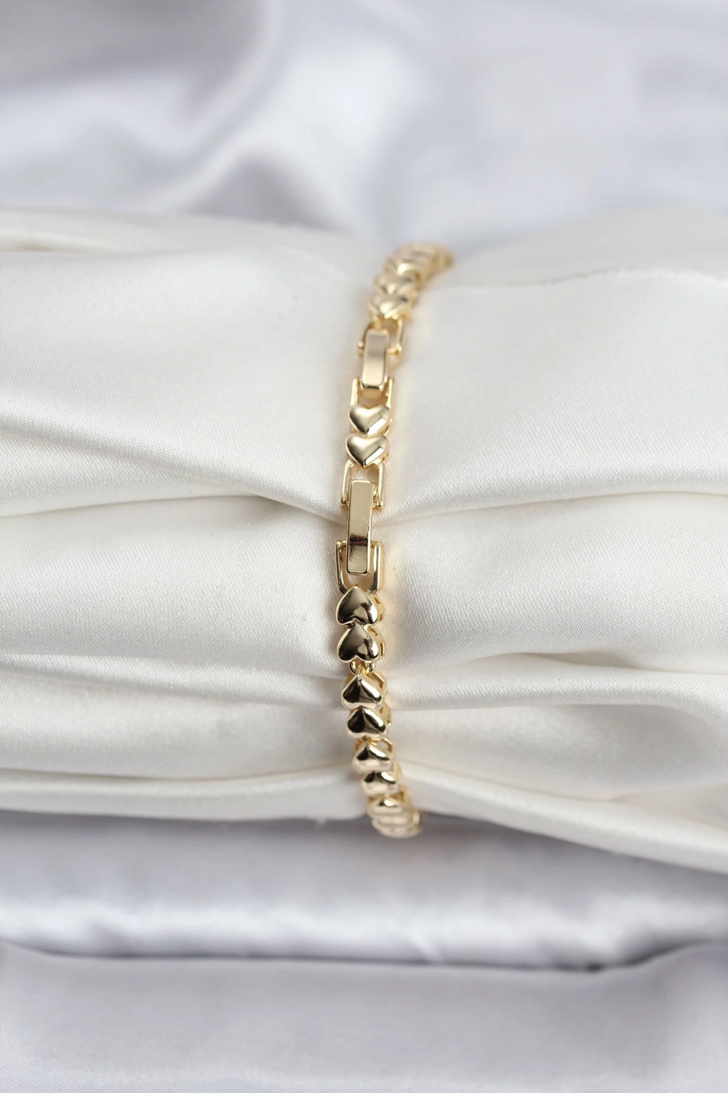 14K Gold Renk Kaplama Kalp Model CM Kadın Bileklik