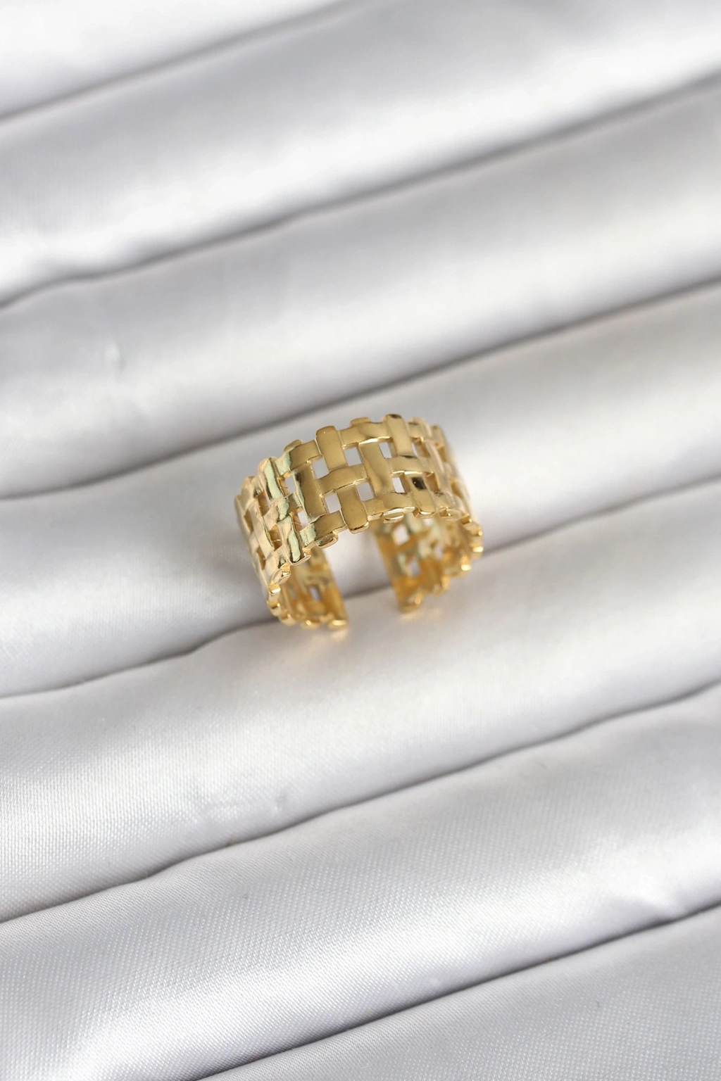 316L Çelik Gold Renk Hasır Model Kadın Yüzük