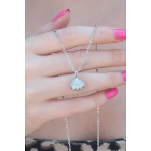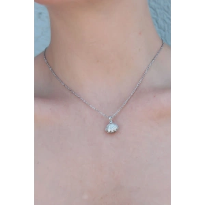 316L Çelik Gümüş Renk İtalyan Zincir Beyaz Sedefli Kare Portre Model Zümrüt Taş Detay Kadın Kolye
