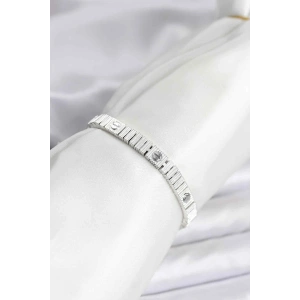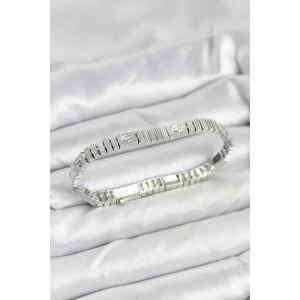 316L Çelik Gümüş Renk Zincir Model Zirkon Taşlı İşleme Detaylı Kadın Bileklik