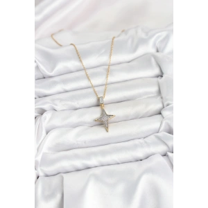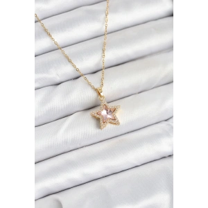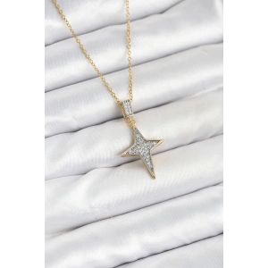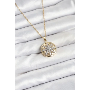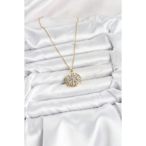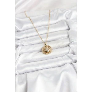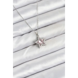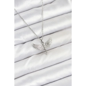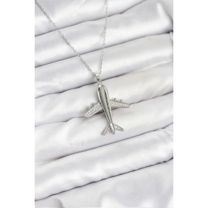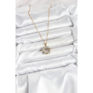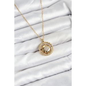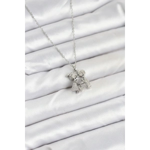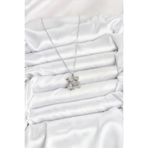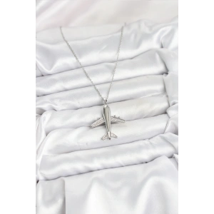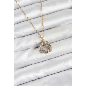 316L Çelik Gümüş Renk Zincir Zirkon Taşlı Halka Model Kadın Kolye
