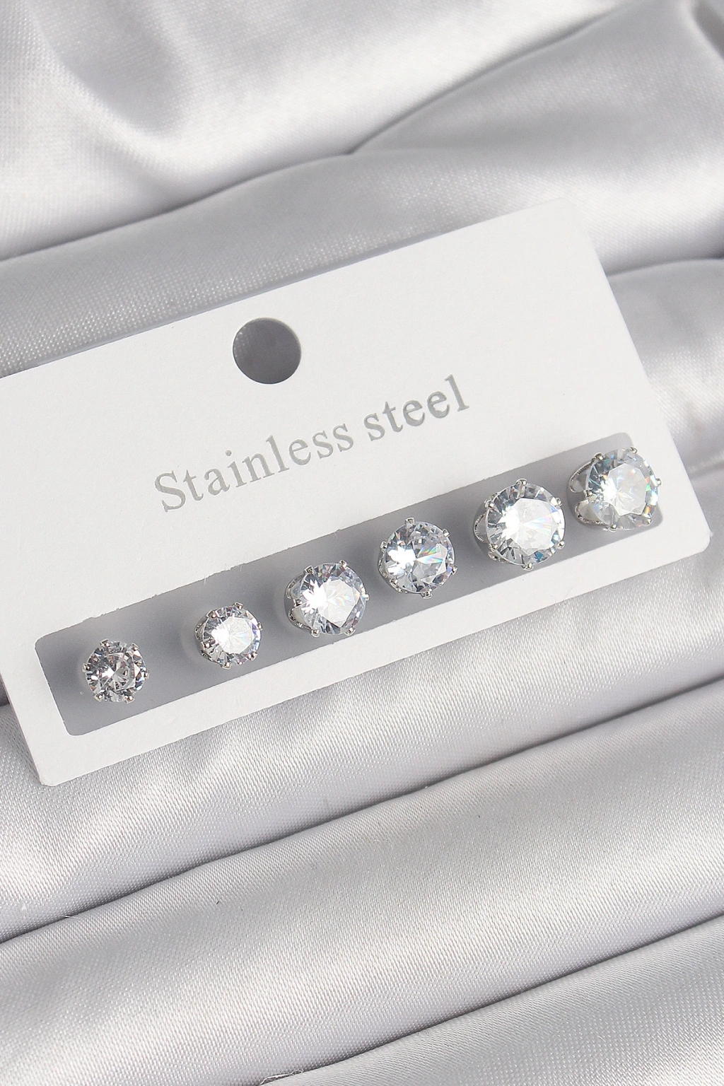 316L Çelik Gümüş Renk Zirkon Taşlı Kadın Küpe Seti