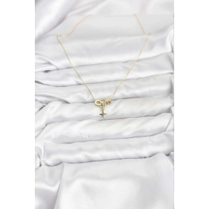 Pirinç İncili Kalp Figürlü Y Model Gold Renk Kadın Kolye