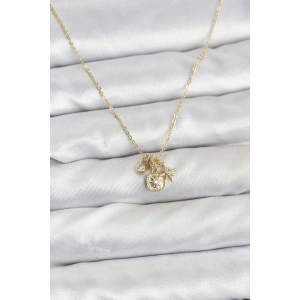 316L Çelik Zincir Gold Renk İtalyan Zincirli Siyah Yonca Model Kadın Kolye