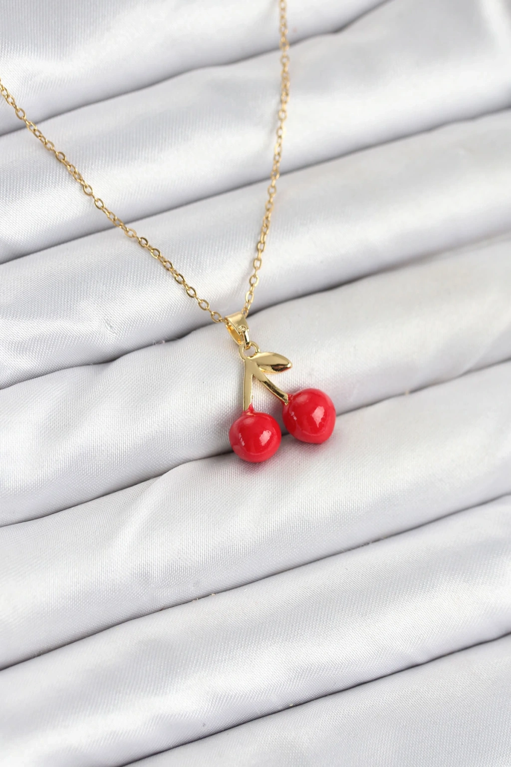 316L Çelik Zincir Gold Renk Kiraz Model Kadın Kolye