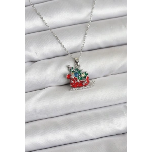 316L Çelik Zincir Gold Renk Kızak ve Çam Ağacı Figürlü Yılbaşı Temalı Kadın Kolye