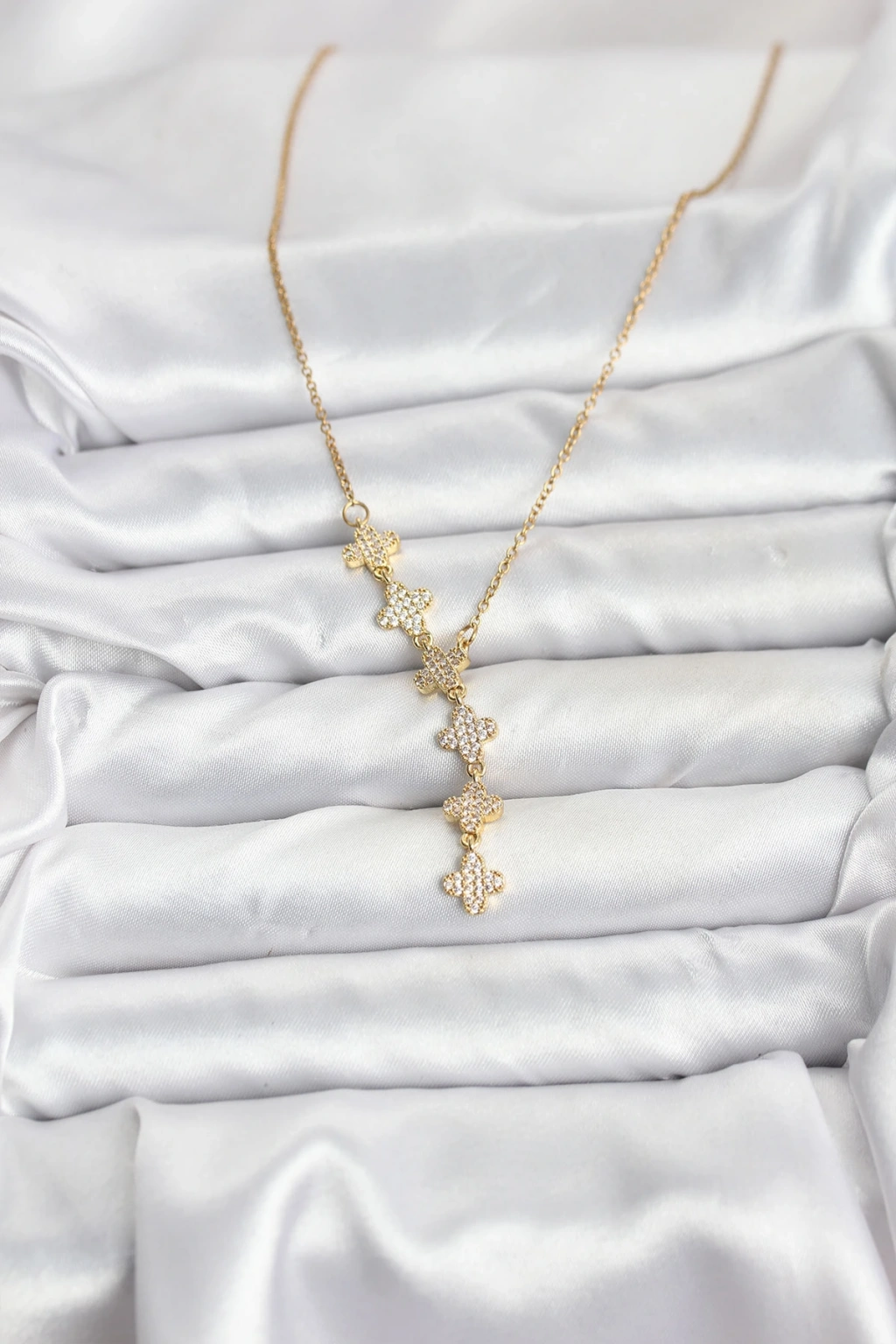 316L Çelik Zincir Gold Renk Yonca Model Kadın Kolye