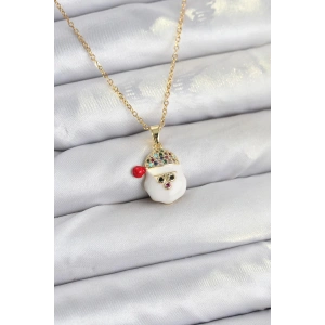 316L Çelik Zincir Gümüş Renk Kızak ve Çam Ağacı Figürlü Yılbaşı Temalı Kadın Kolye