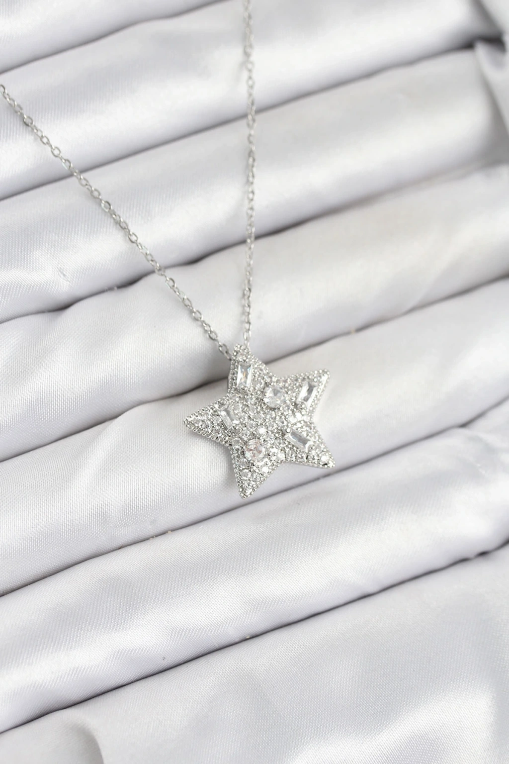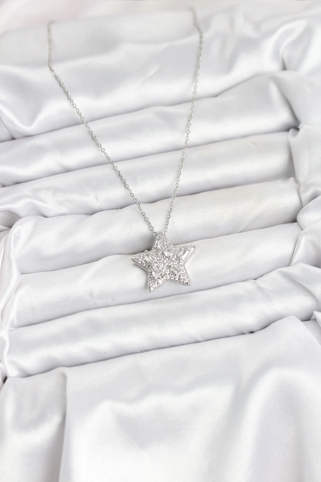 316L Çelik Zincir Gümüş Renk Yıldız Model Kadın Kolye