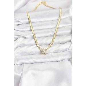316L Çelik Zirkon Taşlı Kilit Ve Sallantılı Anahtar Model Gold Renk Kadın Kolye