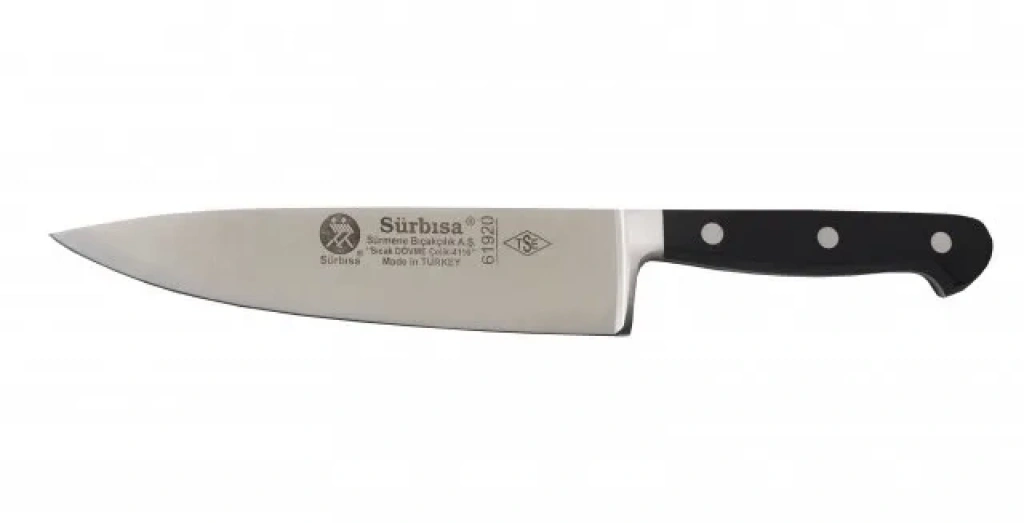 61920, Sürmene'nin geleneksel bıçak yapım tekniklerini ve yüksek kaliteli malzemeleriyle üretilmiş bir şef bıçağıdır. Hem günlük mutfak işlerinde hem de profesyonel kullanımda mükemmel bir performans sunar.