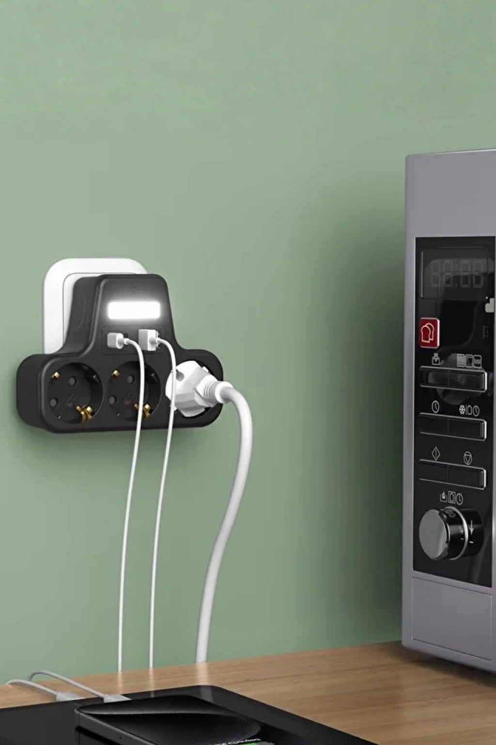 Akım Korumalı Priz Gece Lambalı 3’lü Priz 2xusb 2xtype-c Çıkışlı Grup Priz Çoğaltıcı