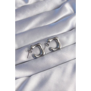316L Çelik Gümüş Renk Dikdörtgen Tasarımlı Tırtıklı Küpe