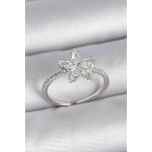 Pirinç Gümüş Renk Beyaz Mineli Çiçek Model Zirkon Taş Detay Kadın Yüzük