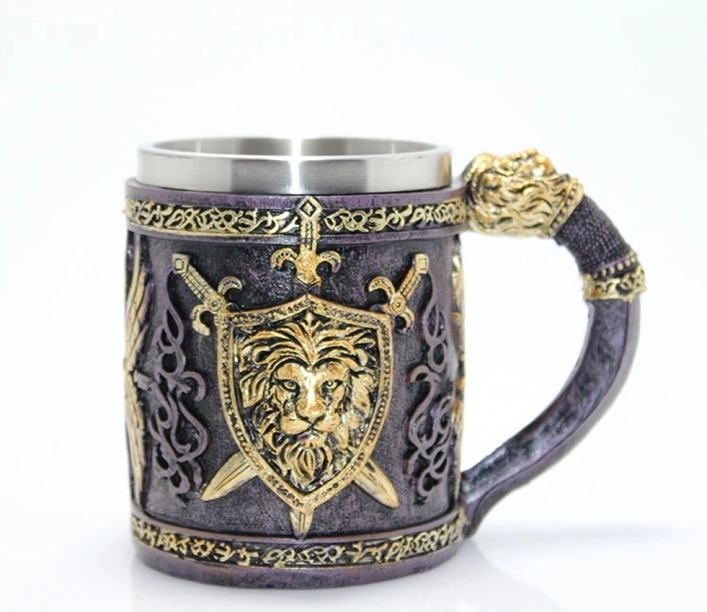 Aslan Büstü Tasarımlı Paslanmaz Çelik Kupa Bardak ALK1016 Ürün Ölçüleri 11*15 Cm