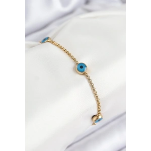 316L Çelik Nazar Boncuğu Model Gold Renk Kadın Bileklik