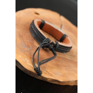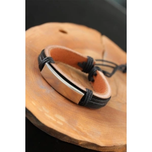 Çelik Aksesuarlı Siyah Renk Deri Erkek Bileklik