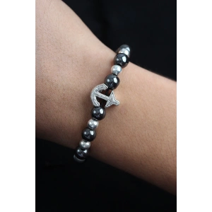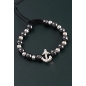 Doğal Taş Çapa Model Gümüş Ve Füme Renk Asansörlü Erkek Bileklik