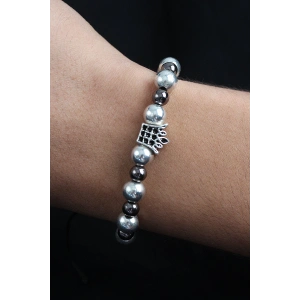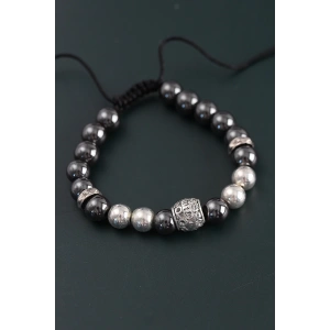 Doğal Taş Family Model Gümüş Ve Füme Renk Asansörlü Erkek Bileklik