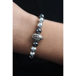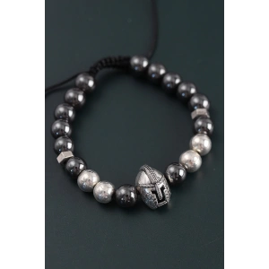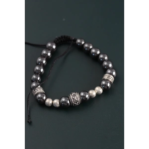 Doğal Taş Gladyatör Model Gümüş Ve Füme Renk Asansörlü Erkek Bileklik