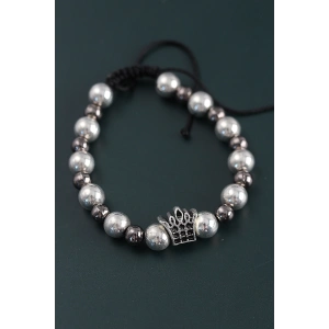 Doğal Taş Kral Tacı Model Gümüş Ve Füme Renk Asansörlü Erkek Bileklik