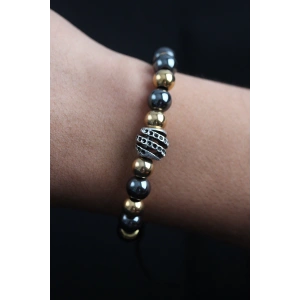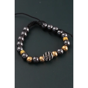 Doğal Taş Çember Model Gold Ve Füme Renk Asansörlü Erkek Bileklik