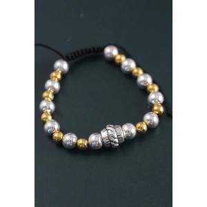 Doğal Taş Sarmal Model Gold Ve Gümüş Renk Asansörlü Erkek Bileklik