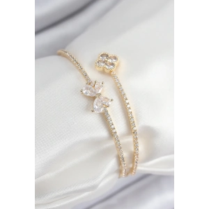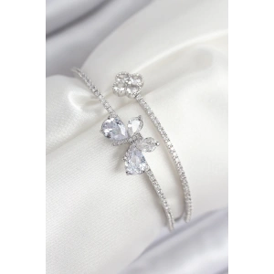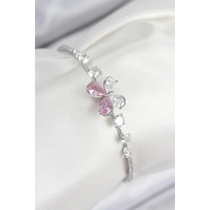 Pirinç Zirkon Taşlı Kelebek Ve Yonca Model Gümüş Renk Kadın Bileklik