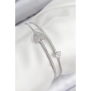 Pirinç Zirkon Taşlı Kalp Model Gümüş Renk Kadın Bileklik