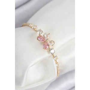 Pirinç Zirkon Taşlı Kelebek Model Gold Renk Kadın Bileklik
