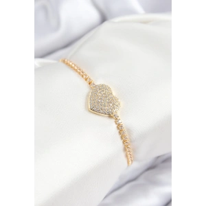 Pirinç Zirkon Taşlı Kalp Model Gold Renk Asansörlü Kadın Bileklik