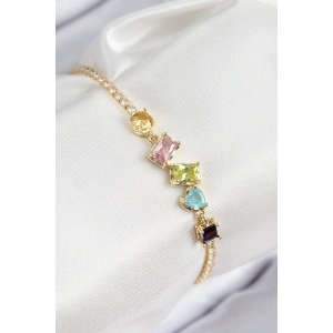 Pirinç Renkli Zirkon Taşlı Geometrik Model Gold Renk Kadın Bileklik