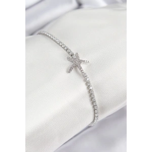 Pirinç Zirkon Taşlı Deniz Yıldızı Model Gümüş Renk Kadın Bileklik