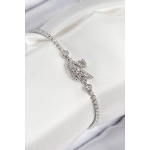Pirinç Zirkon Taşlı Kuğu Model Gümüş Renk Kadın Bileklik