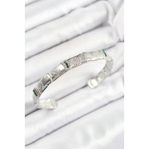 Pirinç Karışık Zirkon Taşlı Çiçek Model Gümüş Renk Altı Açık Kadın Bileklik