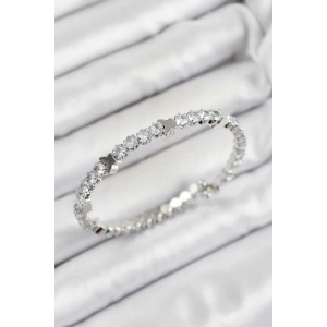 Pirinç Zirkon Taşlı Kalp Model Gümüş Renk Yaylı Kadın Bileklik