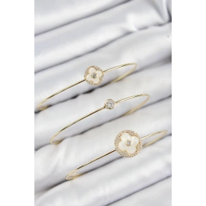Pirinç Zirkon Taşlı Yonca Model Gold Renk Vip 3'lü Kadın Bileklik