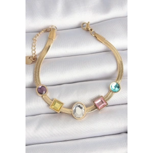 316L Çelik Gold Renk İtalyan Zincir Renkli Zirkon Taşlı Kadın Bileklik