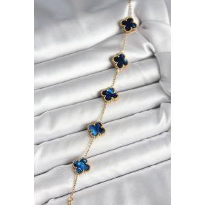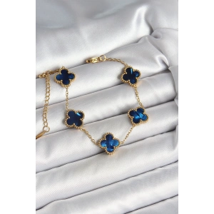 316L Çelik Sedefli Lacivert Gold Renk Yonca Kadın Bileklik