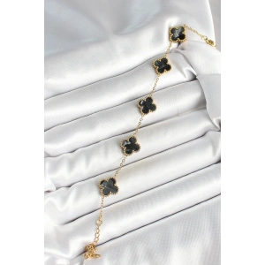 316L Çelik Sedefli Siyah Gold Renk Yonca Kadın Bileklik