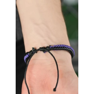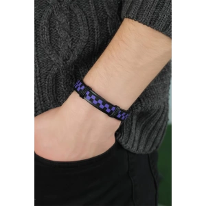 Mor Renk Damalı Deri Erkek Bileklik