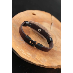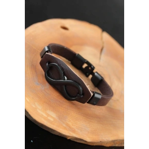 Siyah Sonsuzluklu Metal Aksesuarlı Kahverengi Deri Erkek Bileklik