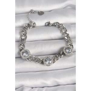 316L Çelik Gümüş Renk Zincir Model Zirkon Taşlı İşleme Detaylı Kadın Bileklik