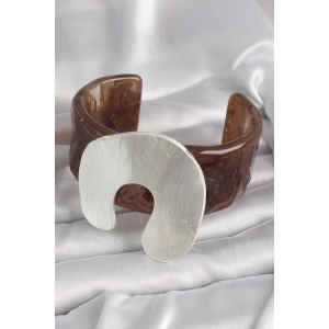 Kahverengi Mermer Desen Akrilik Plastik Gümüş Plaka Model Vintage Kadın Bilezik