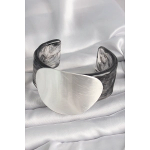 Siyah Mermer Desen Akrilik Pilastik Gümüş Plaka Model Vintage Kadın Bilezik